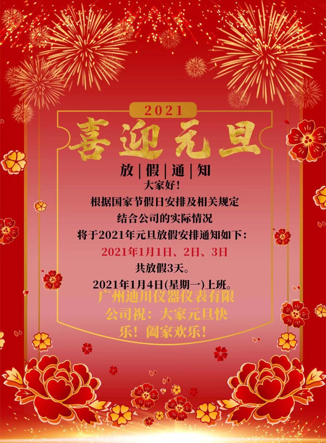 2021年元旦假期(qī)将至,首先向全(quán)體員工緻以節(jiē)日的問候⭐,爲♍了(le)🈲度過歡樂、祥和(hé)、平安的節日,特(tè)提醒全體人員(yuan)注意以💘下幾點(dian):