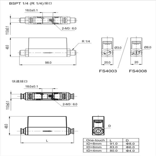 FS4000微型空氣流(liú)量傳感器機(ji)械尺寸: