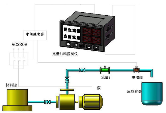 定量(liàng)控制儀(yí)通過電(dian)磁閥進(jìn)行控制(zhi)的接線(xian)示意圖(tu)