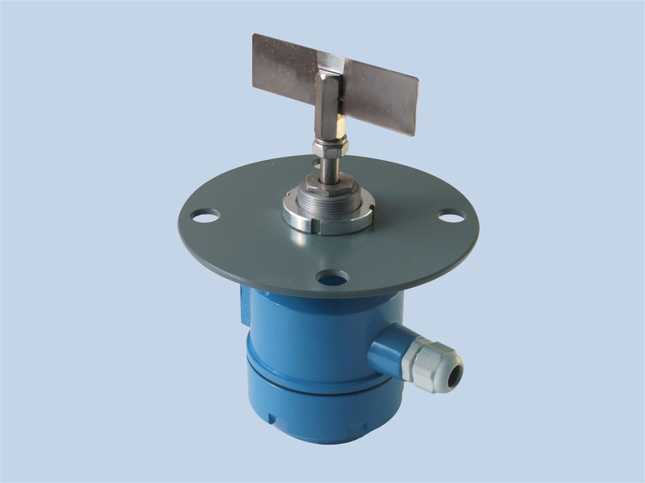 利用永磁(cí)電機帶動葉片旋(xuan)轉,當被檢測物料(liao)上升至葉💃🏻片位置(zhì)時,葉片轉動受阻(zǔ),該阻力通過傳動(dòng)軸傳遞到接線盒(hé)内的檢測裝置,檢(jian)測裝置則向外輸(shu)出一個開關信🔞号(hao),并切斷電機電源(yuan)使葉片停止轉動(dòng)。