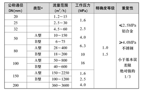 1、流量計規格(ge)、基本參數和性(xìng)能指标(見表1)