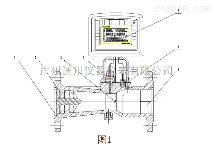1、殼體 2、旋渦(wō)發生體 3、流量傳(chuan)感器 4、壓力傳感(gǎn)器 5、流量積算儀(yí)