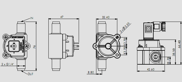 4.5-24VDC 主要适用(yong)流體:水,非(fēi)酒*料,