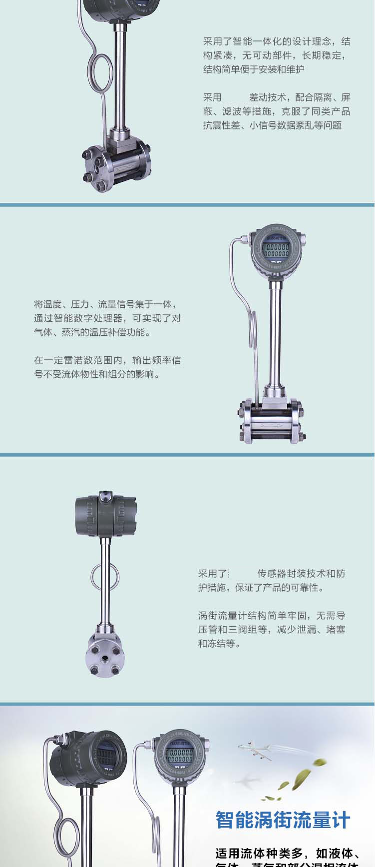 智能(néng)渦街流量計 型号爲:LUGB, 主要用于(yu)工業管道介質流(liú)體的流量測量,如(rú)氣體、液體、蒸氣㊙️等(děng)多種介質。其特點(diǎn)是壓力損失小,量(liàng)程範圍🐉大,精度高(gao),在測量工😘況體積(jī)流量時幾乎不受(shou)流體密度、壓力🚶、溫(wēn)度、粘度等參數的(de)影響。無可動機械(xiè)零件,因此可靠性(xing)高,維護量小。儀表(biao)參數能長期穩定(dìng)。渦街流量計采用(yòng)壓⛷️電應力式傳感(gan)器,可靠性高,可在(zài)-20℃~+250℃的工㊙️作溫度範圍(wéi)内工作。有模拟标(biao)準信号,也有數字(zì)脈沖信号輸出,容(róng)易與計算機等數(shù)字系統配套使用(yong),是一種比較先進(jìn)、理想的流量儀表(biao)。 智能一體渦街流(liú)量計