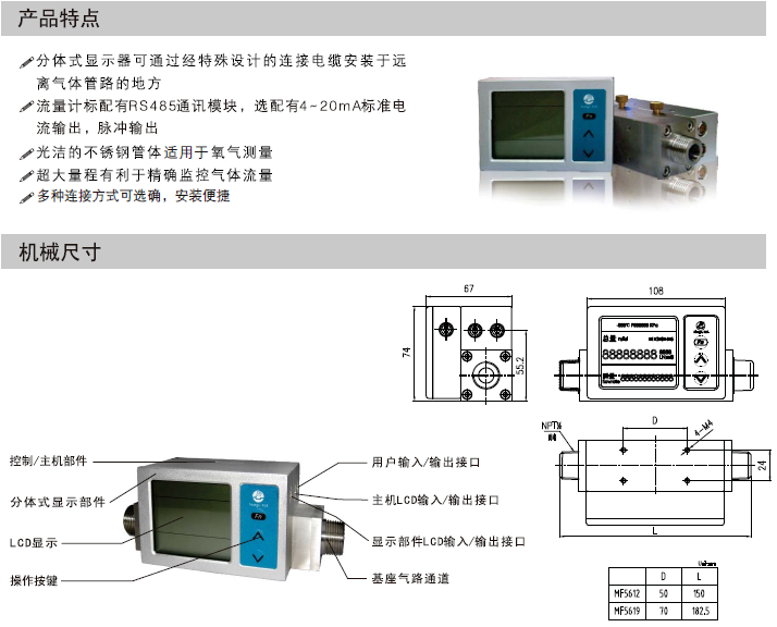 MF5612氣體流(liu)量計産品特(tè)點:
