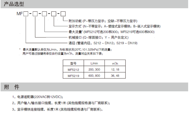 MF5219氣體(ti)質量流(liu)量計産(chan)品選型(xíng):