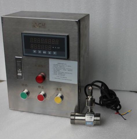 流量傳感器(qi) (選擇對應的(de)口徑和流量控制(zhi)流量範圍 )+泵(bèng)或電磁閥門+定量(liàng)控制櫃